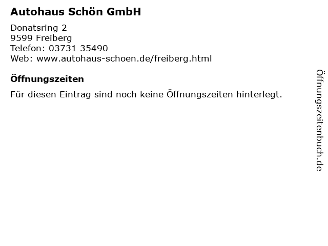 | Öffnungszeiten Autohaus Schön GmbH in Freiberg anzeigen | |