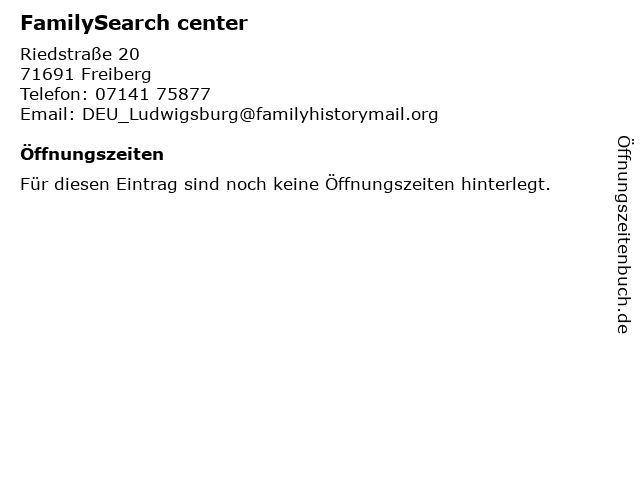 | Öffnungszeiten FamilySearch center in Freiberg anzeigen | |