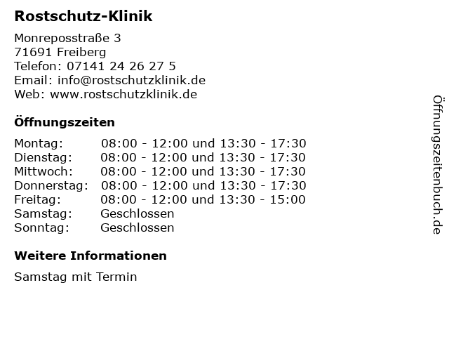 | Öffnungszeiten Rostschutz-Klinik in Freiberg anzeigen | |