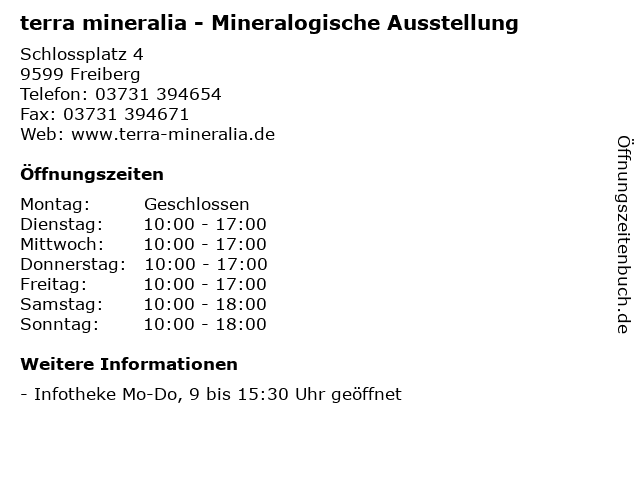 Branchen & Suchbegriffe zu terra mineralia - Mineralogische Ausstellung:ausstellung, infotheke, mineralia, mineralogische, schloss freudenstein, terra, terra mineralia |