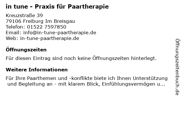 Branchen & Suchbegriffe zu in tune - Praxis für Paartherapie:eheberatung, paartherapie, praxis, tune |
