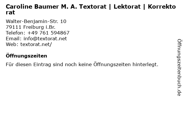 | Caroline Baumer M. A. Textorat | Lektorat | Korrektorat anrufen | |