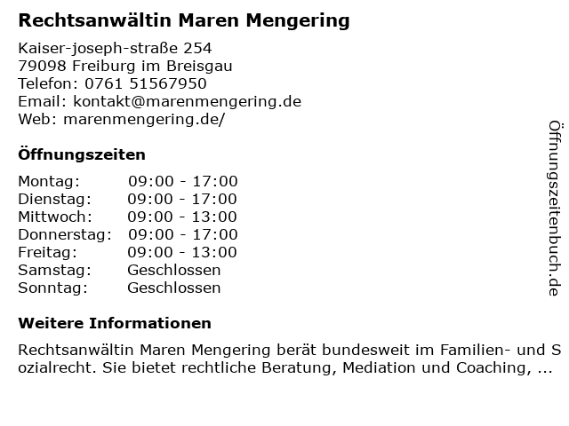 Branchen & Suchbegriffe zu Rechtsanwältin Maren Mengering:maren, mengering, rechtsanwältin |