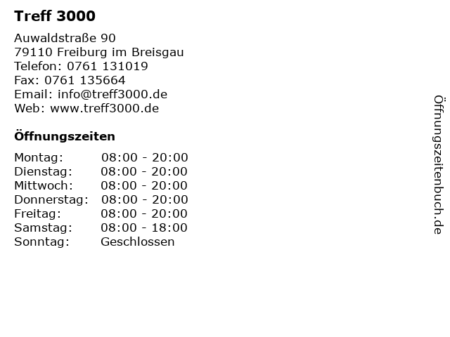 | Öffnungszeiten Treff 3000 in Freiburg im Breisgau anzeigen | |