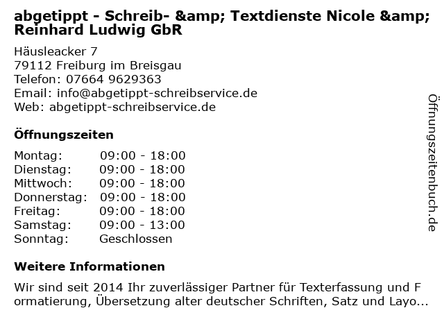 Branchen & Suchbegriffe zu abgetippt - Schreib- & Textdienste Nicole & Reinhard Ludwig GbR:abgetippt, dtp-service, gbr, ludwig, nicole, reinhard, schreib, textdienste |