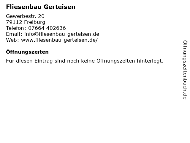 | Öffnungszeiten Fliesenbau Gerteisen in Freiburg anzeigen | |