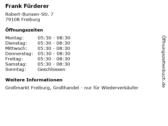 | Öffnungszeiten Frank Fürderer in Freiburg anzeigen | |