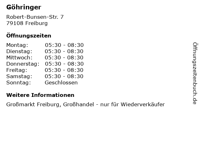 | Öffnungszeiten Göhringer in Freiburg anzeigen | |