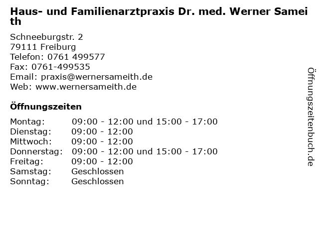 Branchen & Suchbegriffe zu Haus- und Familienarztpraxis Dr. med. Werner Sameith:allgemeinarzt, arzt, dr., familienarztpraxis, haus, med., sameith, werner |