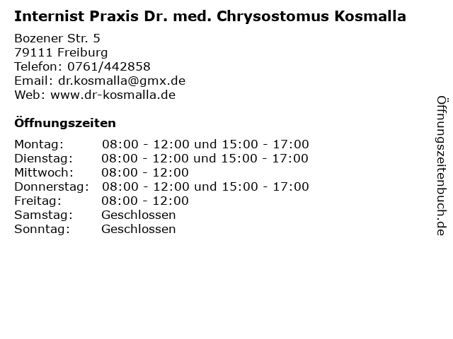 Branchen & Suchbegriffe zu Internist Praxis Dr. med. Chrysostomus Kosmalla:arzt, büro, chrysostomus, dr., internist, klinik, kosmalla, krankenhaus, med., medizin, mvz, praxis, therapie |
