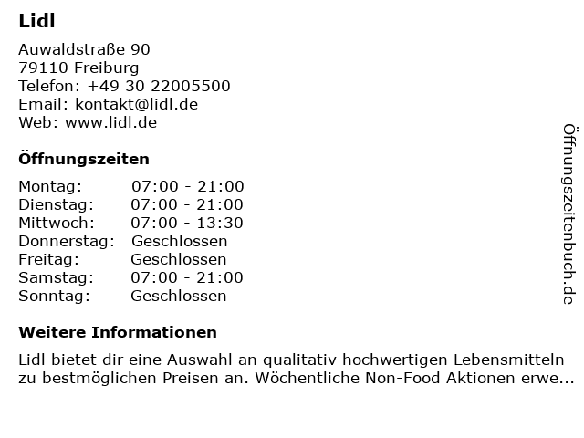 | Öffnungszeiten Lidl in Freiburg anzeigen | |