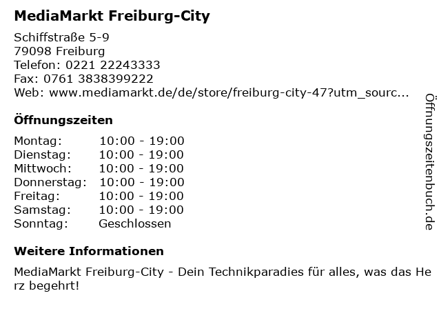Öffnungszeiten MediaMarkt Freiburg-City in Freiburg anzeigen | |