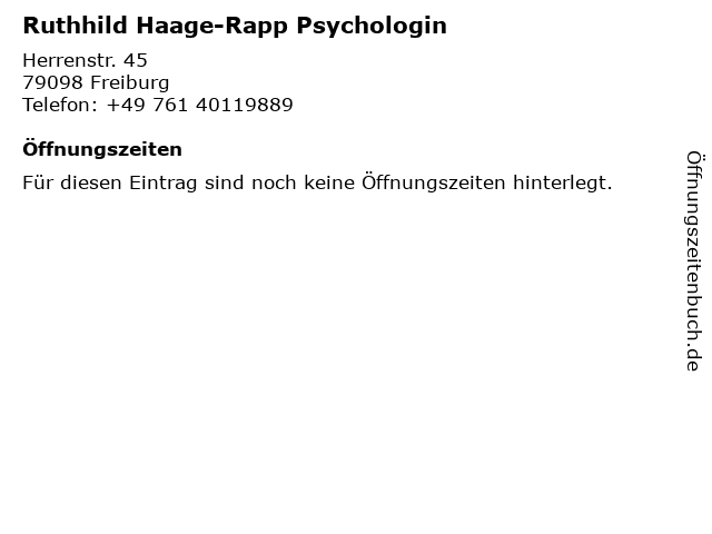 Branchen & Suchbegriffe zu Ruthhild Haage-Rapp Psychologin:haage, psychologin, rapp, ruthhild |