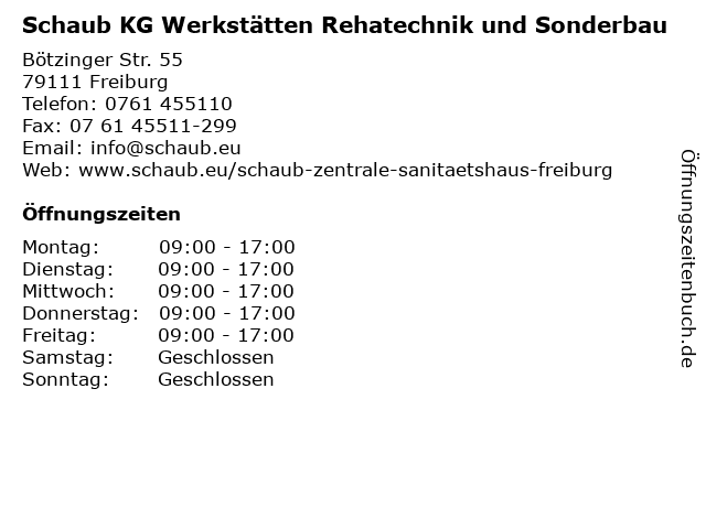 1 Schaub KG Orthopädie- und Orthopädieschuhtechnik (Entfernung: 0,00 km) Bötzinger Str. 55, 79111 Freiburg 6 |