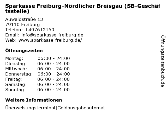 Öffnungszeiten Sparkasse Freiburg-Nördlicher Breisgau (SB-Filiale)