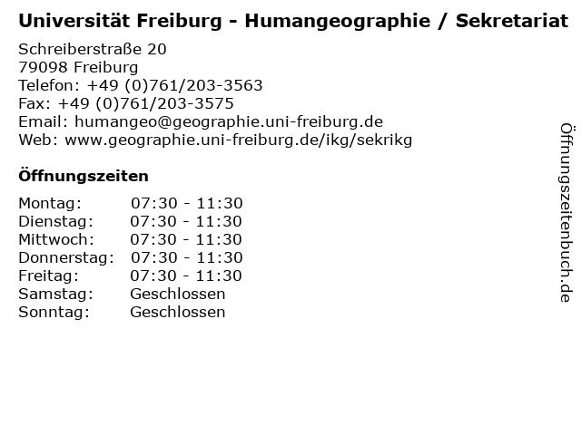 Branchen & Suchbegriffe zu Universität Freiburg - Humangeographie / Sekretariat:bildung, hochschule, humangeographie, lehre, sekretariat, studium, uni, universität |