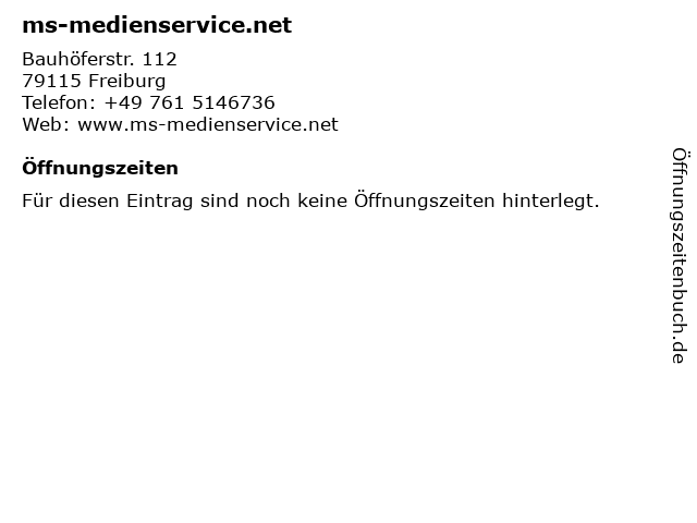 | Öffnungszeiten ms-medienservice.net in Freiburg anzeigen | |