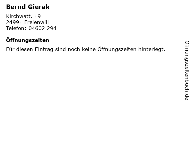 | Öffnungszeiten Bernd Gierak in Freienwill anzeigen | |