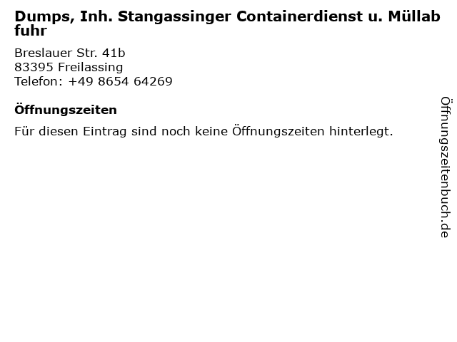 | Dumps, Inh. Stangassinger Containerdienst u. Müllabfuhr anrufen | |