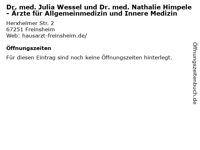 Branchen & Suchbegriffe zu Dr. med. Julia Wessel und Dr. med. Nathalie Himpele - Ärzte für Allgemeinmedizin und Innere Medizin:allgemeinmedizin, arzt, dr., hausarzt, himpele, innere, julia, med., medizin, nathalie, wessel, ärzte |
