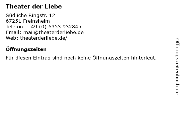 | Öffnungszeiten Theater der Liebe in Freinsheim anzeigen | |
