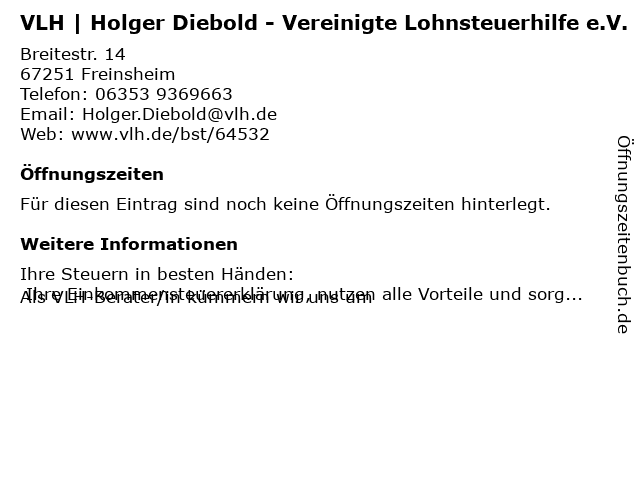 | VLH | Holger Diebold - Vereinigte Lohnsteuerhilfe e.V. anrufen | |