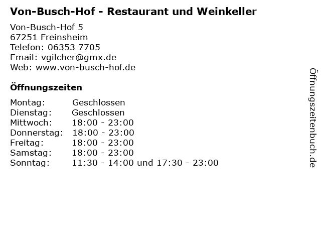 Branchen & Suchbegriffe zu Von-Busch-Hof - Restaurant und Weinkeller:busch, essen, gaststätte, hof, restaurant, speisen, veranstaltungen, von, weine, weinkeller |