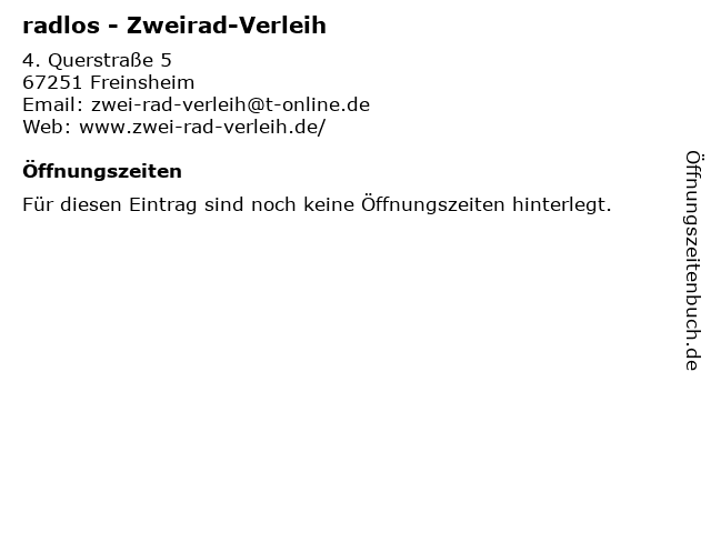 | Öffnungszeiten radlos - Zweirad-Verleih in Freinsheim anzeigen | |
