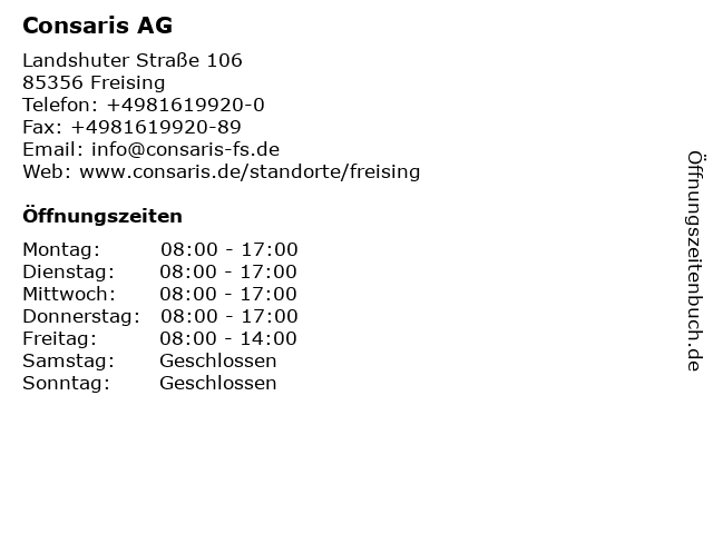 | Öffnungszeiten Consaris AG in Freising anzeigen | |