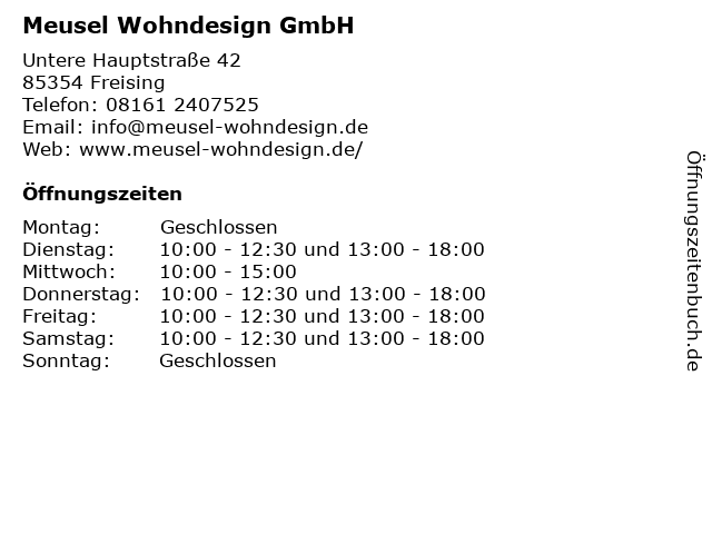 | Öffnungszeiten Meusel Wohndesign GmbH in Freising anzeigen | |