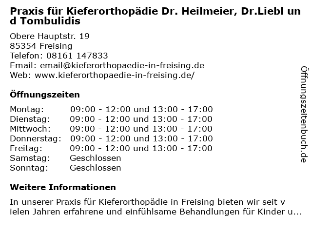 Branchen & Suchbegriffe zu Praxis für Kieferorthopädie Dr. Heilmeier, Dr.Liebl und Tombulidis:dr., dr.liebl, heilmeier, kieferorthopädie, praxis, tombulidis |