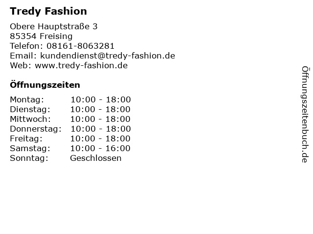 | Öffnungszeiten Tredy Fashion in Freising anzeigen | |