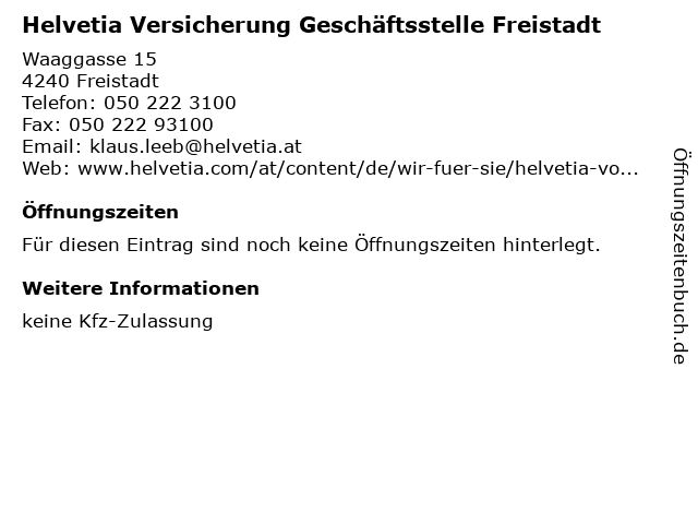 | Helvetia Versicherung Geschäftsstelle Freistadt anrufen | |