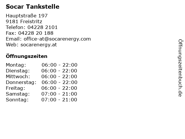 | Öffnungszeiten Socar Tankstelle in Freistritz anzeigen | |