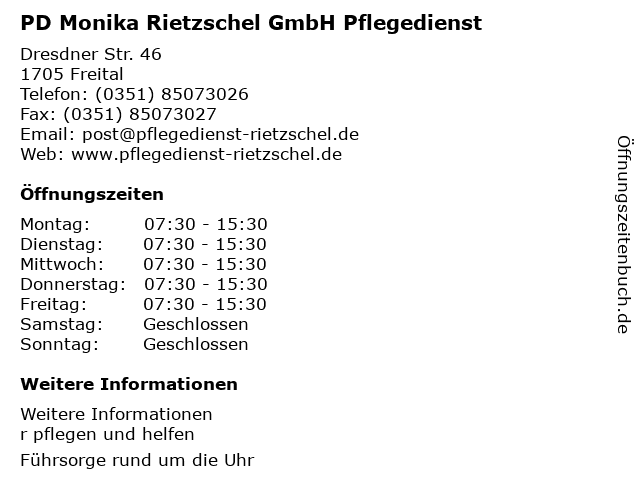 4 Ambulanter Pflegedienst Nicole Tobias - Hauptverwaltung & Sozialstation (Entfernung: 0,35 km) Brahmsstraße 9, 01705 Freital 6 |