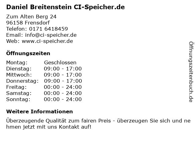 Branchen & Suchbegriffe zu Daniel Breitenstein CI-Speicher.de:breitenstein, ci, daniel, speicher.de |