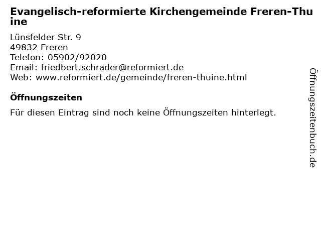| Evangelisch-reformierte Kirchengemeinde Freren-Thuine anrufen | |