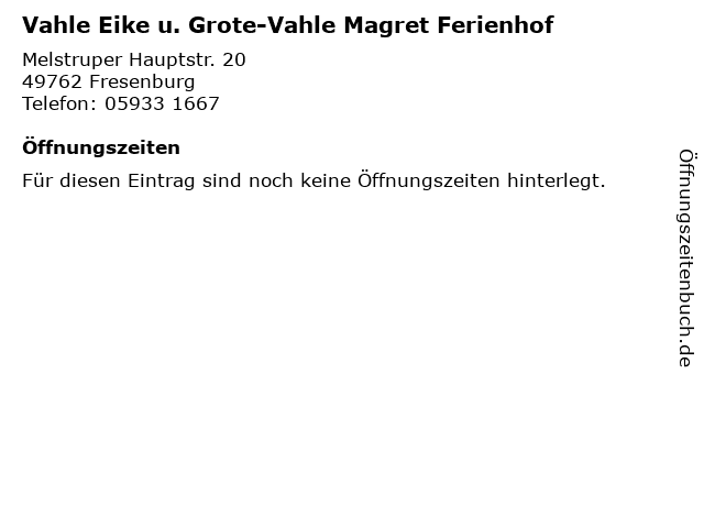 | Vahle Eike u. Grote-Vahle Magret Ferienhof anrufen | |
