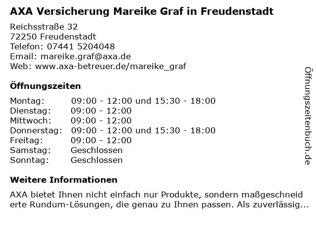 Branchen & Suchbegriffe zu AXA Versicherung Mareike Graf in Freudenstadt:altersvorsorge, autoversicherung, axa, berufshaftpflichtversicherung, gebäude- und hausratsversicherung, graf, kfz-versicherung (motorrad), lebensversicherung, mareike, unternehmen für versicherungsfachfragen, versicherung, zahnmedizinische versicherung |