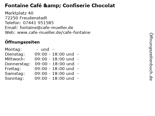 Branchen & Suchbegriffe zu Fontaine Café & Confiserie Chocolat:café, chocolat, confiserie, fontaine, kaffee, pralinen |