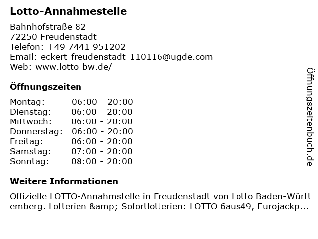 Öffnungszeiten Lotto-Annahmestelle in Freudenstadt anzeigen | |