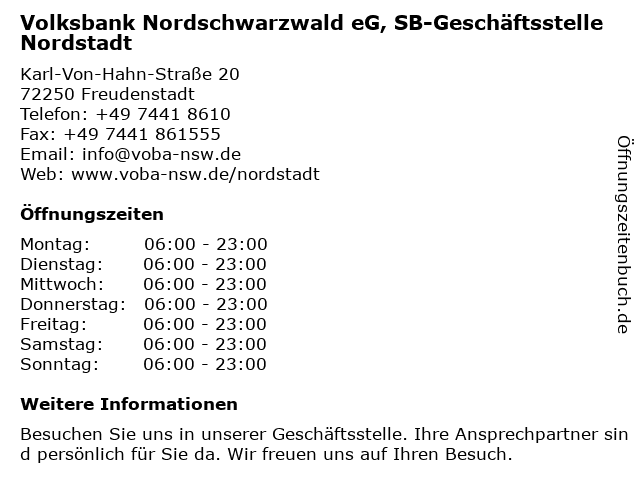| Freitag | 06:00-23:00 |
