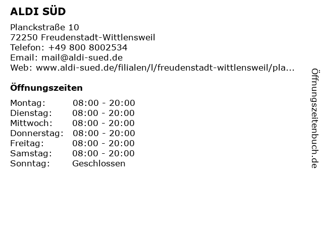 | Adresse ALDI SÜD in Freudenstadt-Wittlensweil anzeigen |