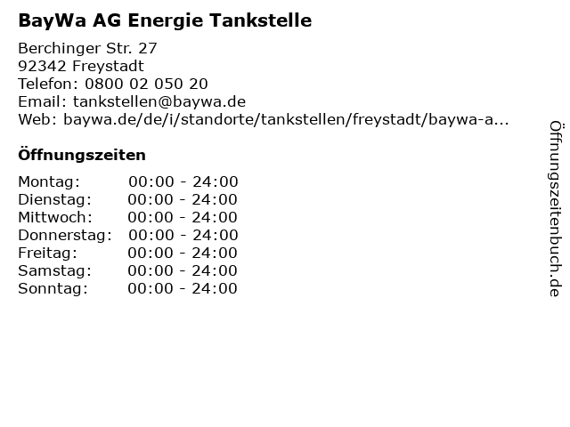 BayWa AG Energie Tankstelle in Freystadt: Telefonnummer, Öffnungszeiten und Adresse