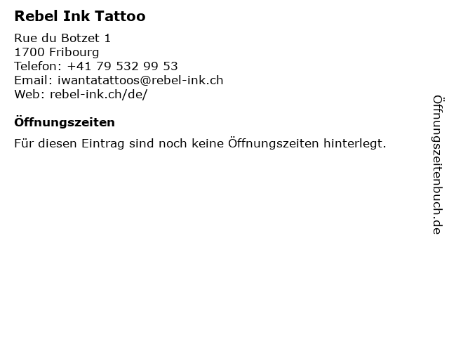 | Öffnungszeiten Rebel Ink Tattoo in Fribourg anzeigen | |