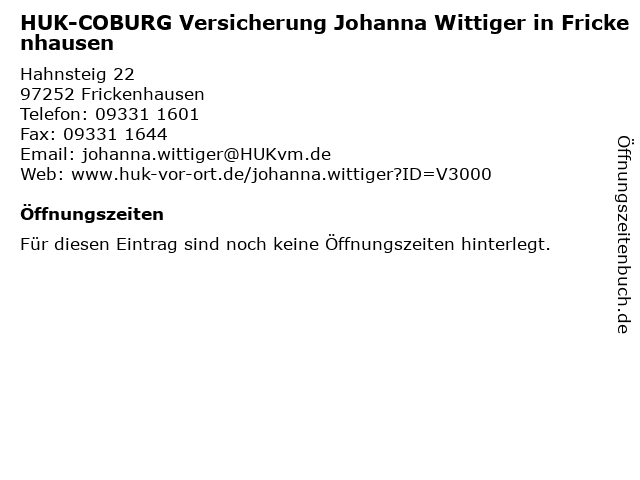| HUK-COBURG Versicherung Johanna Wittiger in Frickenhausen anrufen | |