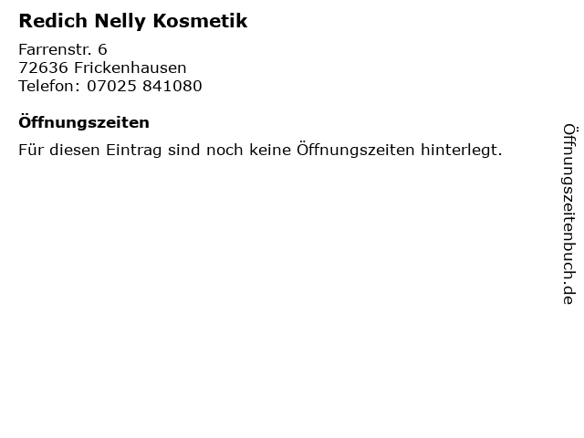 | Öffnungszeiten Redich Nelly Kosmetik in Frickenhausen anzeigen | |
