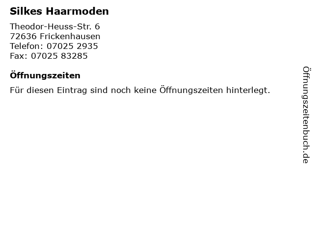 | Öffnungszeiten Silkes Haarmoden in Frickenhausen anzeigen | |