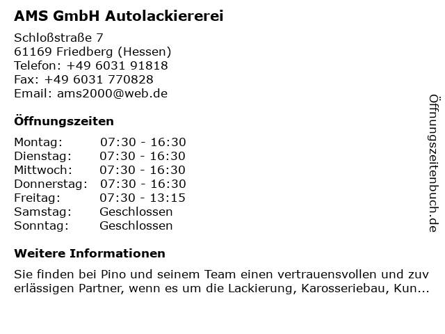 1 AGETHEN GmbH - KFZ-Werkstatt und Autolackiererei (Entfernung: 2,45 km) Am Straßbach 4, 61169 Friedberg 3 Luigi Magurano Autolackierungen Autolackiererei L&M (Entfernung: 10,71 km) Industriestr. 13, 61381 Friedrichsdorf 6 |