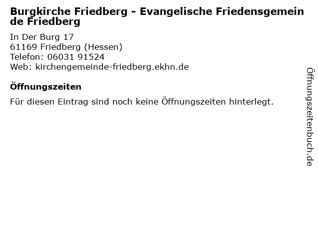 | Burgkirche Friedberg - Evangelische Friedensgemeinde Friedberg anrufen | |